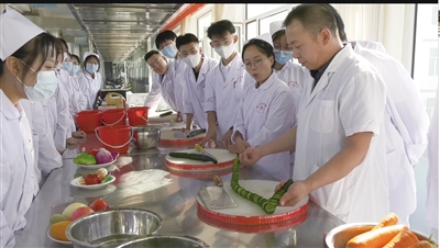 “今天我们先练习切土豆丝,别切着手。” “噔噔噔……”近日,乌兰察布医学高等专科学校把日常劳动实践课搬进了厨房,同学们在老师的指导下认真学着怎样把土豆丝切得更细一些。