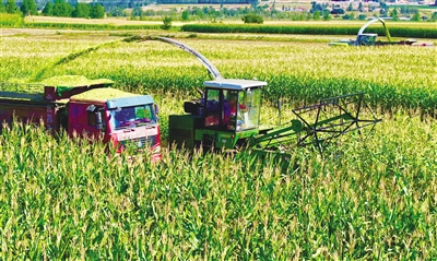 “今年我种了200多亩玉米,每亩能产1600多斤。以前都是人工掰,现在都用合作社的机械收割,几天就完事,打捆的秸秆还能卖钱,又快又省事。”望着从收割机倾泻而下的玉米棒,赵晓东脸上扬起喜悦的笑容。