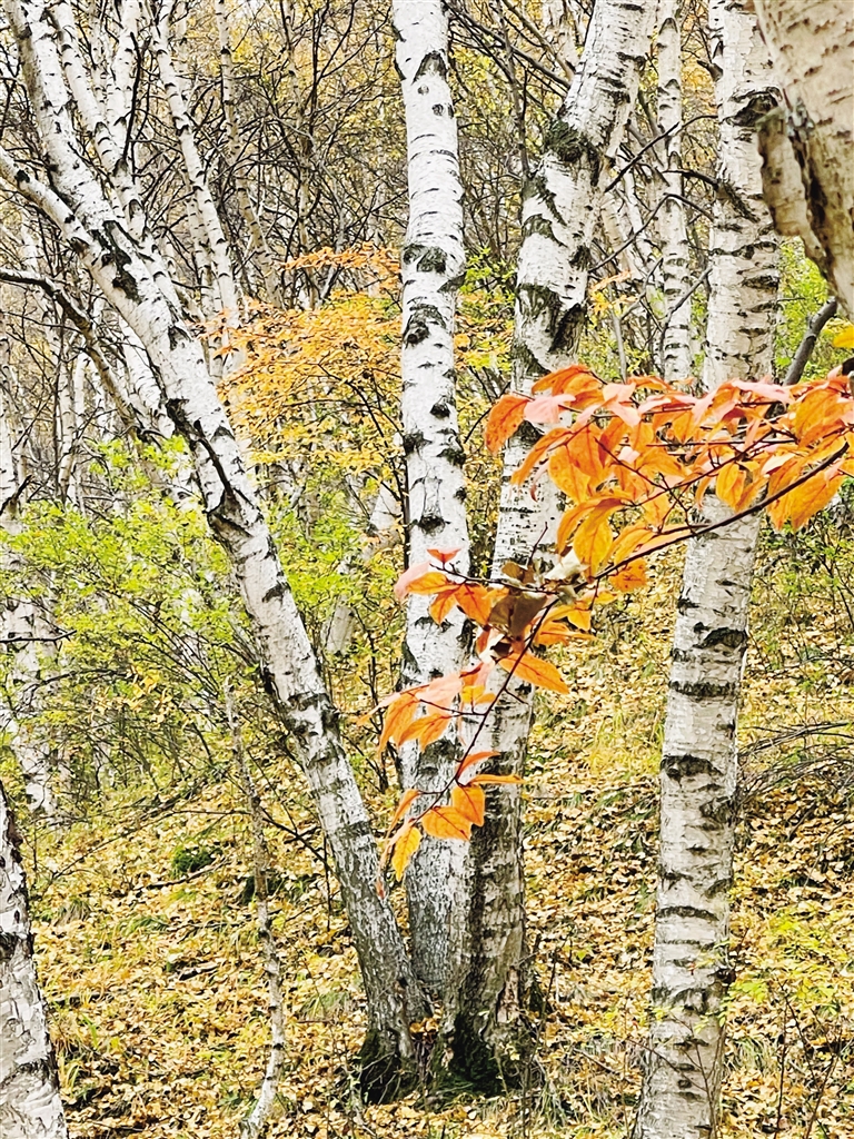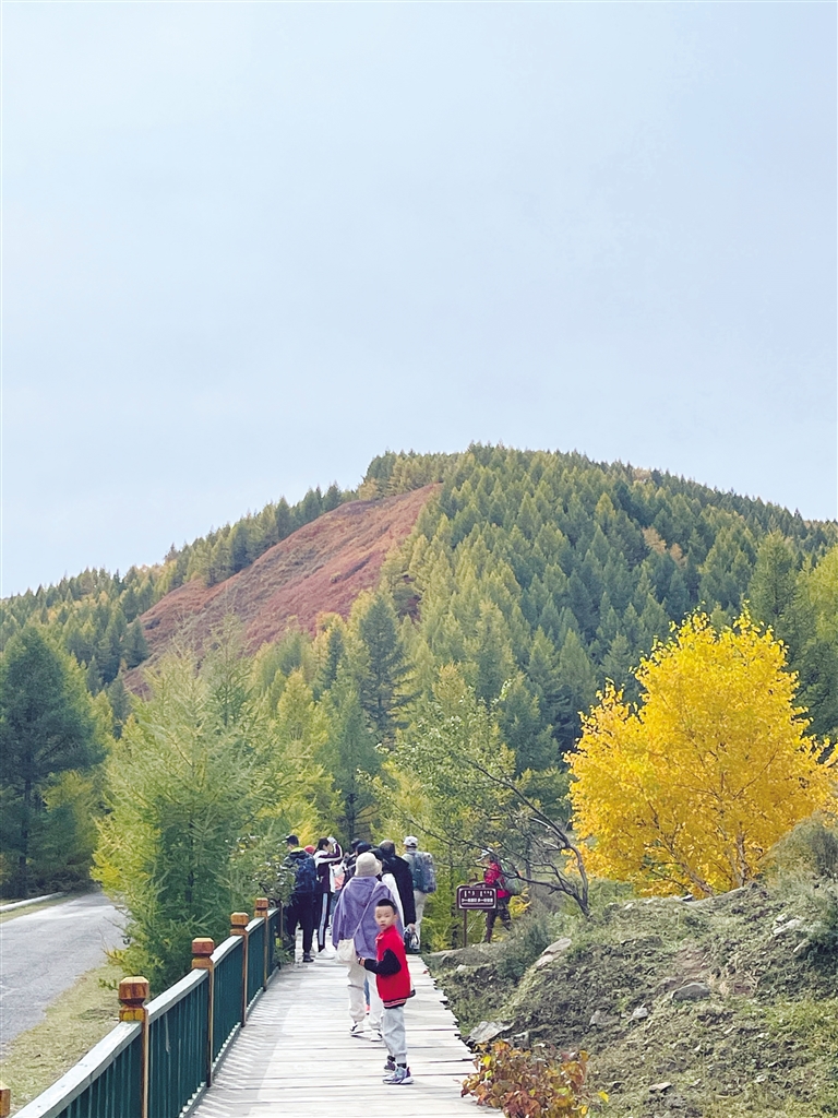经过了一夏的苍翠,秋季的苏木山森林公园落叶松、云杉、白桦林如同染上金黄、深红、青绿的油彩,将游人带进了斑斓世界。