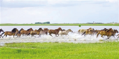 在城市里的伊敏河岸边,那片原生态绿草诱惑它们许久了。