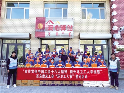 10月26日,二连浩特市总工会开展2023年环卫工人节集中慰问活动,为环卫工人送上爱心大礼包。近年来,二连浩特市总工会通过“夏送清凉”“冬送温暖”等举措,把党和政府的关心关爱、工会组织的温暖送到环卫工人身边,在全社会营造了尊重劳动者、关爱环卫工的浓厚氛围。