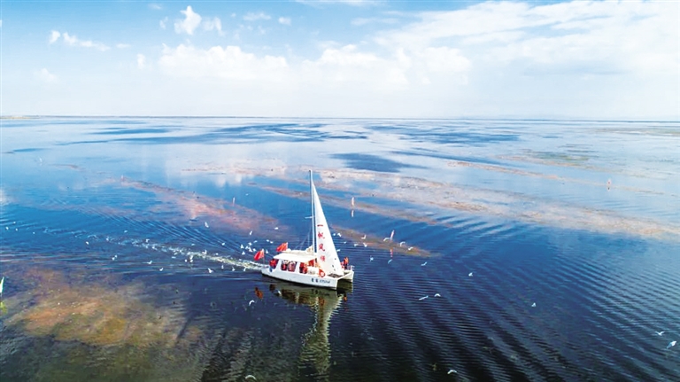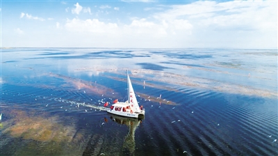 在码头上,记者见到经营帆船的“渔二代”曹建山,他出生在乌梁素海岸边,亲眼看见这片“海”由好变坏再变好的全过程。“小时候,乌梁素海的生态环境非常好,家家生活富足。后来‘海’水受到污染,鱼少了、鸟没了,家人只能到处打工养家。这几年,水质逐年改善,小时候的那片‘海’又回来了,大家的生活越来越富足。”他一边开船一边介绍。