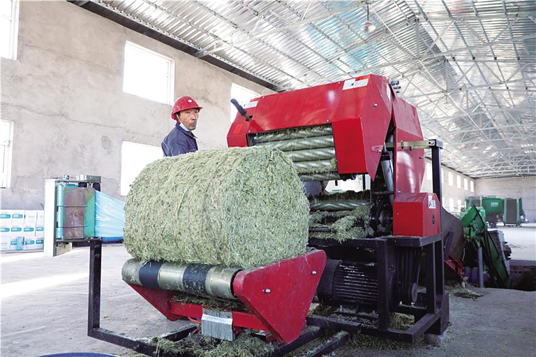 包双龙从机器上抽出一把已经打碎的柠条,一边揉搓,一边展示,“这样长短适中、绵软干净的饲料,就是我们给牛羊准备的一道优质‘营养餐’。”