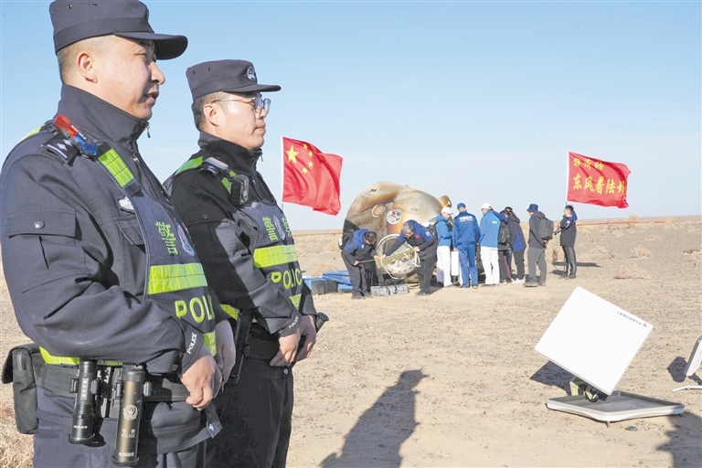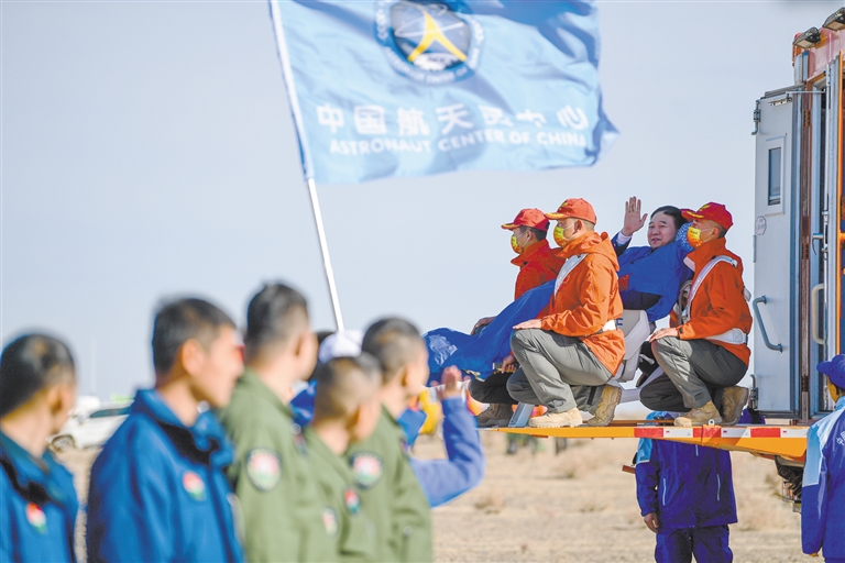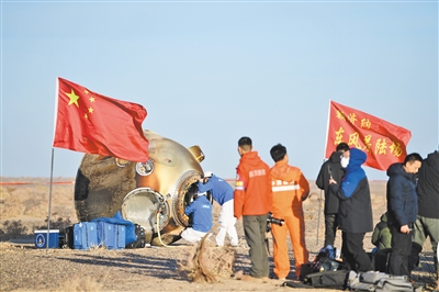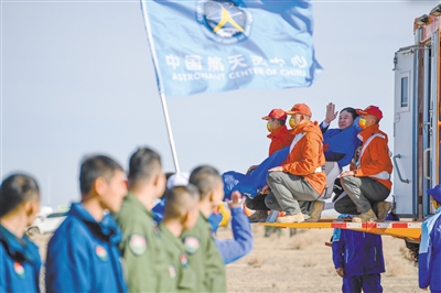 明媚的阳光下,矗立在返回舱两侧的五星红旗和额济纳东风着陆场的旗帜格外耀眼夺目。“5个月的任务我们已经顺利完成了,这次到咱们中国空间站出差,感觉很好,感觉很爽!”景海鹏出舱后说。朱杨柱则是刚返回地球就期待早日重返天宫。桂海潮说,在中国空间站里的每一天都过得充实美妙,期待再次到中国空间站出差,探索更多的科学奥秘。