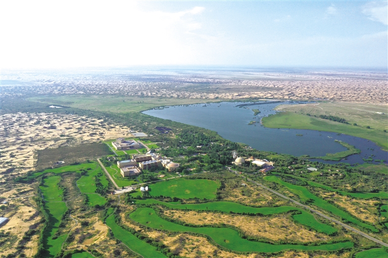 30多年前,库布其还是一片风沙肆虐、寸草不生的荒漠。如今,这里的沙丘披上绿衣,沙漠变良田,产兴业旺,绿富同兴。从甘草到西瓜、西红柿等有机果蔬,再到肉苁蓉、梭梭等中草药,库布其种出一条食品产业链,成为库布其沙漠绿色经济的组成部分。就连广阔的沙漠腹地也变身光伏农场。近年来,库布其每年的降雨量达到310毫米,涵养水源240多亿立方米,沙尘天气减少了95%;绝迹多年的野生动物重现沙漠,生物种类增至1026种,库布其成为京津冀地区风沙防护的“绿色之墙”。