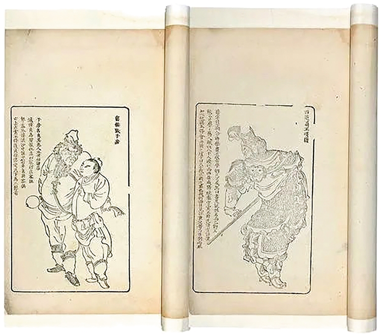 《无双谱》又名《南陵无双谱》,刊刻于清康熙三十三年,绘者从汉代至宋代1400多年间,挑选了40多位广为称道的名人,如苏武、武则天、李白、司马迁、花木兰、岳飞等,绘成绣像并题诗文。由于这些人物事迹举世无双,故图册称《无双谱》,绘画者是擅长人物画的绍兴人金古良,镌刻者是康熙时期的御殿刻工朱圭。