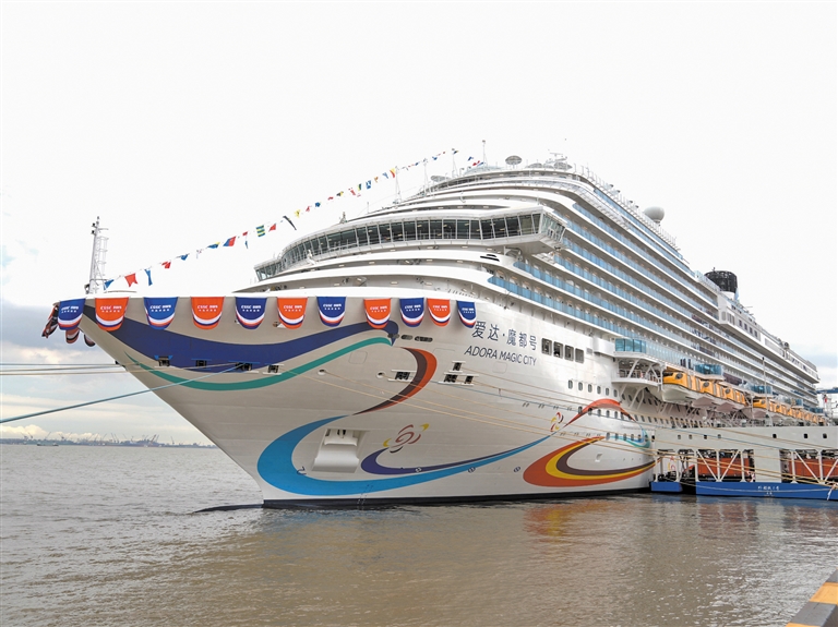 这是11月4日拍摄的“爱达·魔都号”。当日,我国国产首艘大型邮轮“爱达·魔都号”正式命名交付。中国船舶集团有限公司旗下上海外高桥造船有限公司与中船邮轮科技发展有限公司及其所属爱达邮轮有限公司正式签署相关交船文件,运营准备工作全面启动,“爱达·魔都号”将于2024年1月1日开启商业首航。“爱达·魔都号”总吨位13.55万吨,长323.6米,宽37.2米,最大高度72.2米;全船搭载107个系统、5.5万个设备,包含2500万个零部件,完工敷设4750公里电缆;船上有客房2125间,可容纳乘客5246人,配置高达16层、面积4万平方米的生活娱乐公共区域。中国船舶工业行业协会秘书长李彦庆说,我国已具备同时建造航空母舰、大型液化天然气运输船、大型邮轮的能力,集齐造船工业“三颗明珠”。