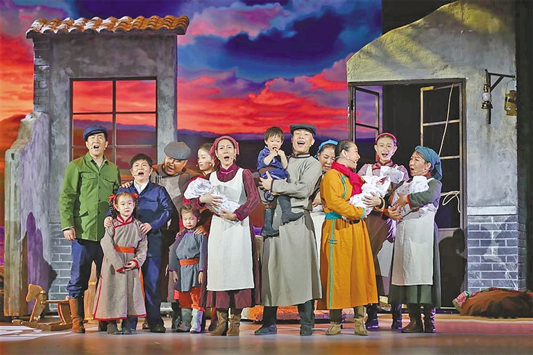 在“第二十届中国·内蒙古草原文化节”期间,原创音乐剧《人民楷模都贵玛》与广大观众见面了。该剧以20世纪60年代上海“三千孤儿入内蒙”为背景,围绕牧民都贵玛从19岁未婚姑娘时主动请缨照顾28个“国家的孩子”,到凭借顽强毅力和全身心投入,使孩子们恢复健康并送别孩子们到牧民家中分散抚养;从刻苦学习医学知识、掌握接生本领,到接生途中冒雪战饿狼成功掩护孩子脱险;从新时代为战胜疫情数次捐款,到慷慨解囊资助牧区的孩子完成大学学业……剧中多角度、全方位塑造了主人公闪光的形象,不仅体现在抚育“国家的孩子”成长的重大历史事件中,而且体现在学医助产、捐款资助、保护孩子勇斗饿狼等日常生活和感人事迹中。故事在地广人稀、交通不便、物质条件匮乏的典型环境下发生,使人物的崇高精神更具有典型性。而令人肃然起敬还在于这一崇高精神是发自于内心真实的、自然的、朴素的境界,更贴近生活贴近群众,因而赢得了人们的尊敬爱戴,同时也引发观众对平凡而伟大的人生思考。该剧发挥了文艺作品春风化雨、润物细无声的教育启示作用,充溢着中华民族传统美德和正能量,对于今天新时代新征程不断铸牢中华民族共同体意识、实现强国复兴具有现实意义。
