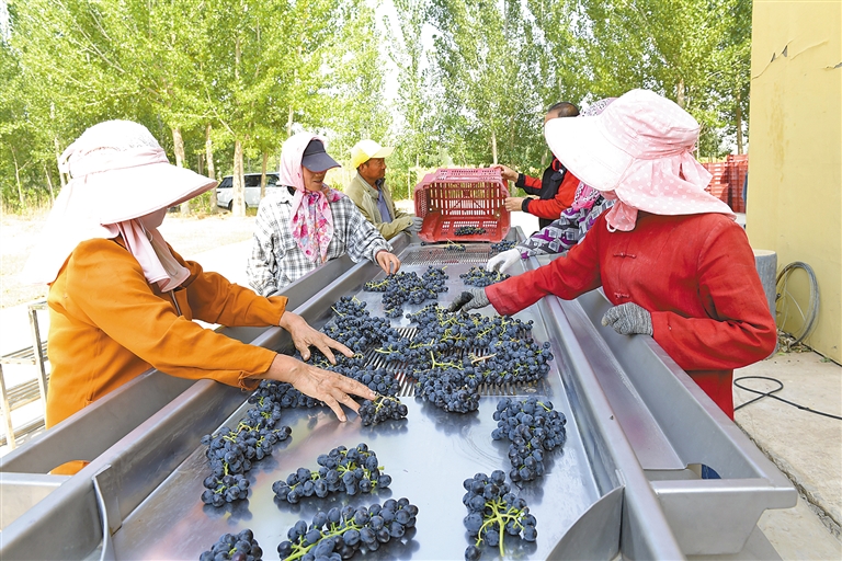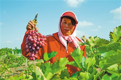 “我们充分利用乌兰布和沙区小气候优势,遵循‘多采光、少用水、新技术、高效益’治沙理念,建立起全程可自控的葡萄园。”该公司负责人孙金亮介绍。
