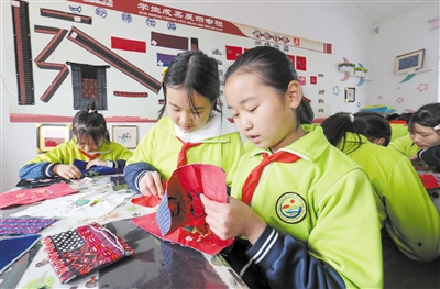 11月13日,在贵州省黔东南苗族侗族自治州施秉县杨柳塘镇中心小学,学生在苗绣课堂学习刺绣。近年来,贵州省黔东南苗族侗族自治州施秉县不断培育和打造苗族刺绣特色产业,引进特色民族文化加工企业,形成集“研、产、销”和旅游观光于一体的苗族刺绣产业链,并采取“公司+实训+农户”的模式,实现线上线下销售,2000余名苗族妇女在家门口就业增收。同时,施秉县还不断加强非遗文化的传承,让当地的孩子们从小接触这一传统技艺,使大山里的“非遗”焕发出新的生机。 新华社发