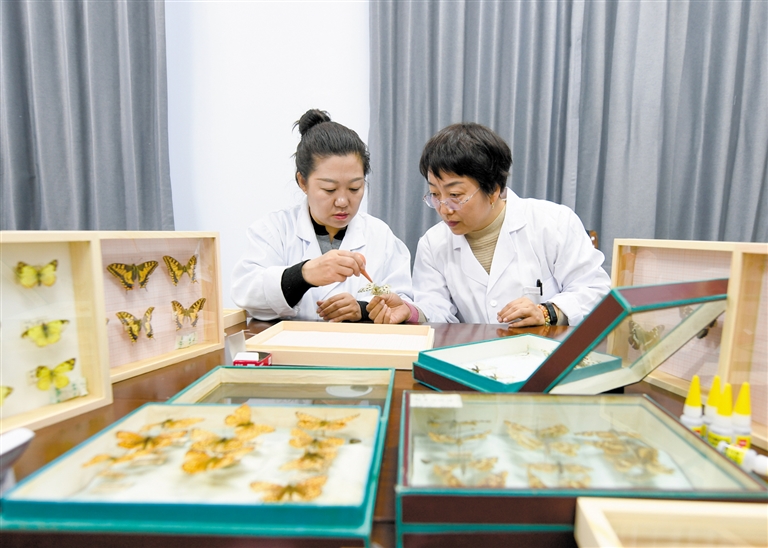 11月14日,内蒙古林业科学研究院的工作人员正在修复昆虫标本。内蒙古林业科学研究院开展的昆虫标本修复和整理工作是对几代林业人收集的2000多件昆虫标本进行的挽救性修复,修复后的标本将为我区后续研究昆虫资源提供重要的资料。本报记者 孟和朝鲁 摄