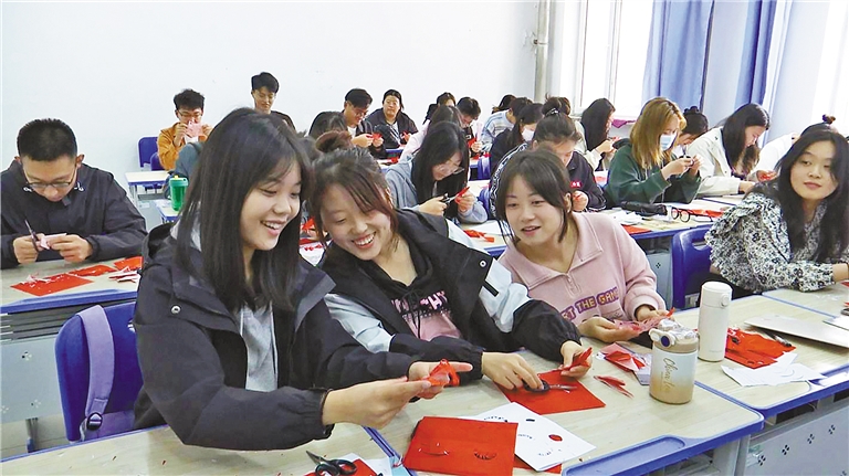 近日,在赤峰学院教育科学学院的教室里,自治区级非遗传承人萨仁用生动形象的语言介绍剪纸的方法和技巧,从折纸技巧、剪纸手法、结构把控等多个方面手把手地指导,给学生们传授红山剪纸的独特技艺。