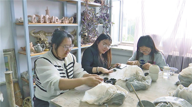 除了剪纸艺术,赤峰学院积极发掘学科专业中的优秀资源,大力弘扬传承中华优秀传统文化。学校与当地多家单位合作,定期开展刺绣、巴林石雕等非遗传习活动,让更多人沉浸式体验非遗项目,了解北疆文化的丰富内涵。
