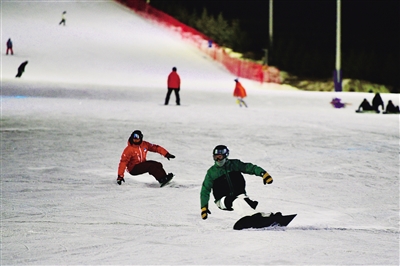 11月25日晚,滑雪爱好者在呼和浩特市马鬃山滑雪场滑雪。当天,马鬃山滑雪场2023-2024雪季正式开板营业,同时夜场滑雪对外开放,满足滑雪爱好者和游客的需求。