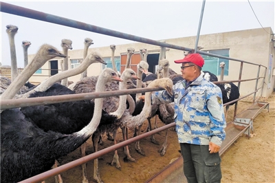 “刚开始缺乏养殖经验,损失了不少,但是我没放弃,一点点摸索,积累经验。”随着时间的推移,呼日乐巴特掌握了鸵鸟的生活习性和日常养护等一整套养殖方法,鸵鸟成活率越来越高。