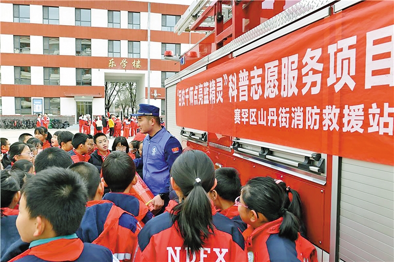 “小哥哥们来啦!”每到一所学校开展志愿服务、消防宣传活动,呼和浩特市消防救援支队赛罕区大队“北疆蓝焰”山丹蓝雷锋志愿服务队队员们都会受到小“迷弟”“迷妹”们的热烈欢迎。