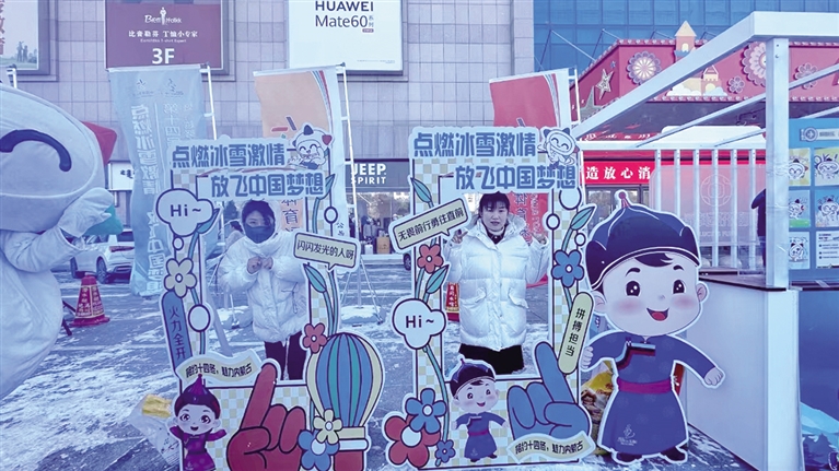在呼和浩特市活动现场,游戏互动区域热闹非凡,丰富多彩的游戏区、欢乐喜庆的合影打卡区、公益展示区和产品体验区全都人气爆棚,憨厚可爱的乐小星、“十四冬”吉祥物安达、赛努成为现场最热打卡点,市民们争相合影,定格灿烂笑容。