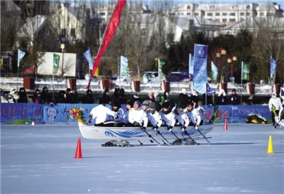 12月22日,首届中国大学生冰上龙舟锦标赛暨2023-2024冰上龙舟超级联赛(锡林郭勒站)在锡林浩特市开赛,来自北京大学、浙江大学、南开大学、聊城大学等18所高校和北京市、吉林市、锡林郭勒盟3地共85支队伍501名运动员齐聚一堂,献上一场场精彩的冰上“速度与激情”。本报记者 巴依斯古楞 见习记者 朱媛丽 摄
