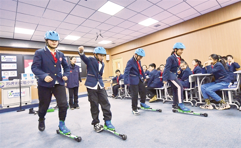 在迎接“十四冬”的热烈氛围中,内蒙古冰雪运动协会教练员王海萌在直播中分享了“十四冬”的赛事文化知识,并现场带领同学们体验越野滑轮项目。同学们认真听取讲解,踊跃参与互动问答,现场气氛轻松热烈。直播间的网友也积极互动,纷纷通过留言的方式参与问答,为生动有趣的直播点赞。