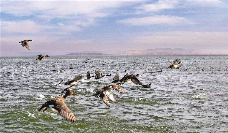在不远处的岸边,岱海自然保护区服务中心科研宣教室主任陈雨,正从高倍望远镜中观察着候鸟。“目前,岱海的候鸟种类达到90多种,能够吸引这么多候鸟,说明岱海的生态环境显著改善。”守护着美丽的岱海,陈雨感到骄傲而踏实。