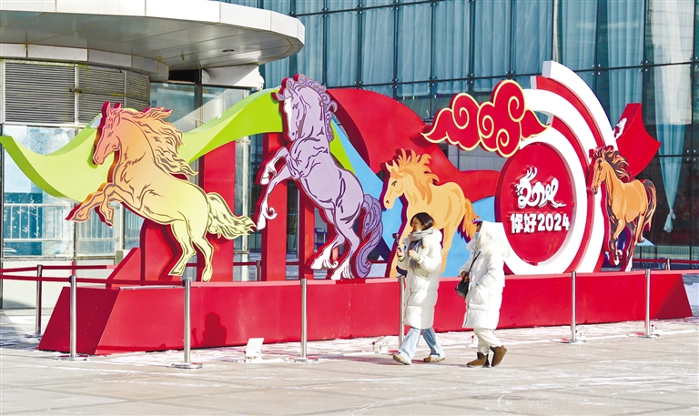 2023年12月31日,呼和浩特市民从“你好2024”装饰字样的雕塑旁走过。随着新年临近,呼和浩特市的大街小巷到处洋溢着节日的喜庆气氛,人们在欢声笑语中迎接新年的到来。