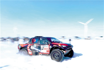 2023年12月31日,参赛选手驾车在雪地里加速驰骋。当日,迎新年2023—2024浑善达克沙地穿越大环线四季拉力赛冬季首赛在锡林浩特市白音库伦牧场火热开赛。来自北京、天津、河北等10个省市的1万余名赛车手和越野自驾爱好者,驾乘3000余辆赛车参加比赛。本报记者 巴依斯古楞 摄