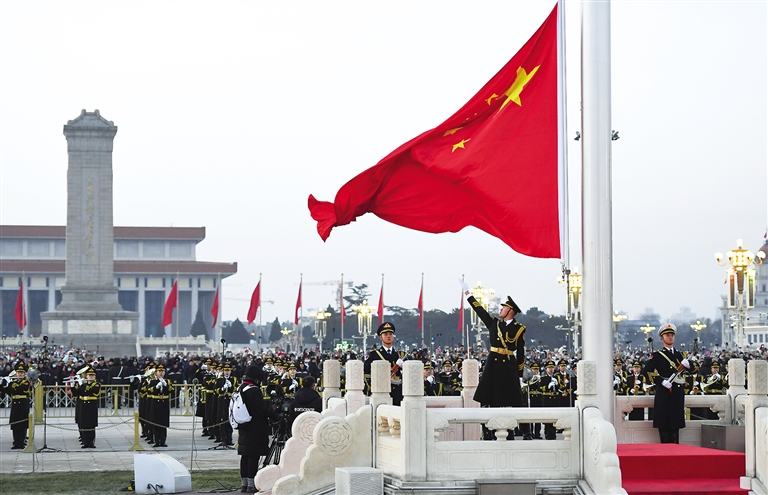 1月1日晨,北京天安门广场举行隆重的升国旗仪式。
