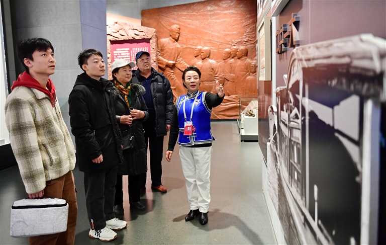 2023年12月28日,像往常一样,志愿者王玉华早早来到了内蒙古博物院,在《解放之路》展厅,她如数家珍地为观众讲解展厅内珍藏着的革命文物和图片资料。