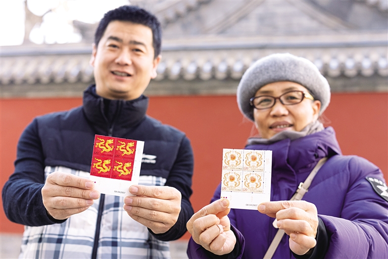 1月5日,呼和浩特市民展示当日在全国统一发行的《甲辰年》特种邮票。2024年是农历甲辰年,即十二生肖的龙年。《甲辰年》特种邮票一套两枚,全国发行数量为2998万套。寓意新春的生肖邮票,吸引了众多市民前来购买收藏。
