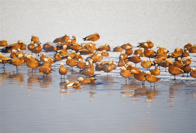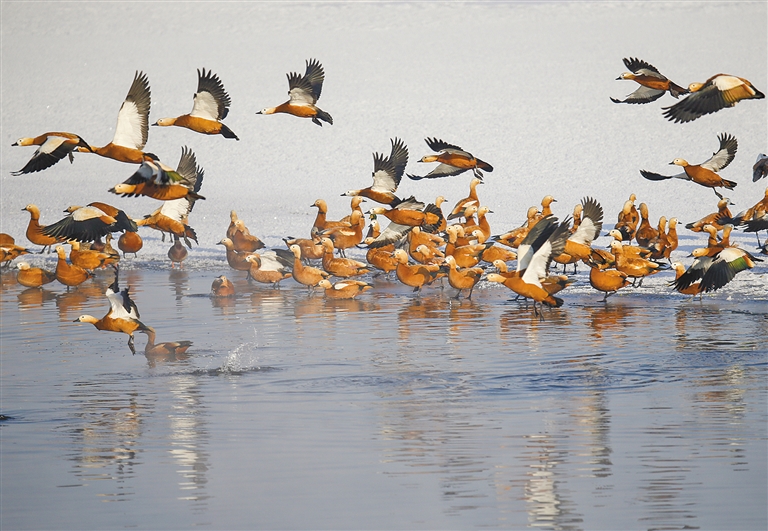 冬日里,上百只赤麻鸭在呼和浩特市大黑河水面上展翅翱翔、嬉戏玩耍,场面蔚为壮观。随着城市生态环境改善,一些候鸟在迁徙途中适应了当地环境,从匆匆“过客”变成长期“居民”。