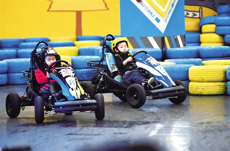 1月6日,小朋友们在游乐场内玩耍。呼和浩特市各小学陆续放假,孩子们在游乐场、书店、冰场开启丰富多彩的寒假生活。本报记者 孟和朝鲁 摄