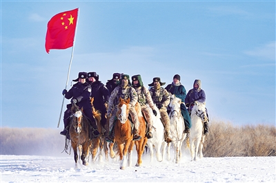 近日,呼伦贝尔边境管理支队额布德格边境派出所“赫力沁”马背巡防队的队员们在边境线上踏雪巡逻。连日来,该所采取马巡、步巡的方式对边境重点区域加大踏查巡边力度,及时掌握边境区域情况,确保边境辖区安全稳定。本报记者 许敬 通讯员 崔超 摄