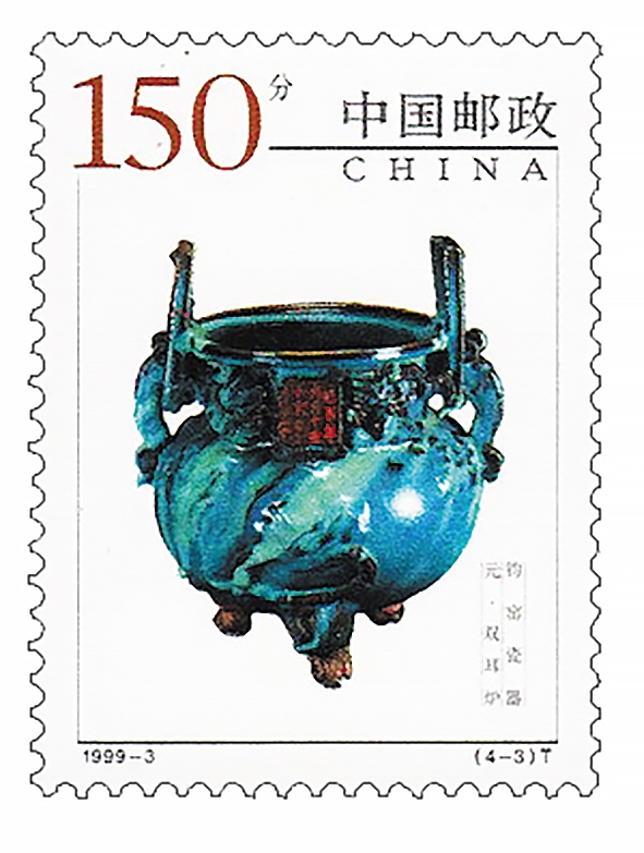 1999年4月8日,国家邮政局发行了《中国陶瓷—钧窑瓷器》特种邮票,全套4枚。邮票图案名称分别为北宋出戟尊、北宋尊、元·双耳炉、元·双耳连座瓶。其中,元·双耳炉邮票的图案就是内蒙古博物院珍藏的“小宋自造”钧窑香炉。