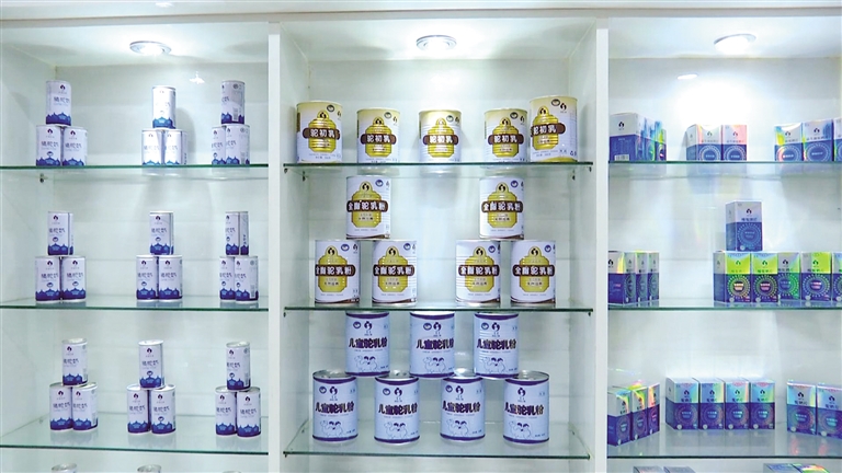 好驼奶要有好的生产企业。走进阿拉善右旗神驼乳业科技有限公司,笔者看到崭新的厂房内一台台机械设备整齐排列,纵横交错的管道几乎布满了整个车间,员工们在生产线上动作娴熟地操作,灌装、打包、出厂……日均生产纯驼奶、驼酸奶、驼奶粉等驼奶制品5吨。“自驼乳系列产品投入生产以来,公司平均每天收奶量7吨左右。这批刚打包好的鲜驼奶马上就要发到北京、上海、深圳等地的客户。”该公司总经理王汉林表示,为保证消费者喝到的都是优质新鲜驼奶,整个加工过程是以自动化、智能化为标准,订单式生产。