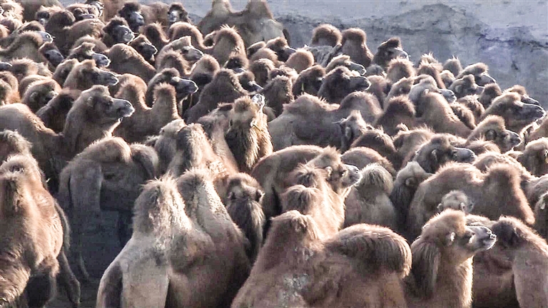 “去年的收入很好,我们家里的骆驼有200多峰,产奶母驼有80多峰,每天的产奶量在220公斤左右,一年大约送了80多吨驼奶,纯收入100多万元。” 色尔格林说。