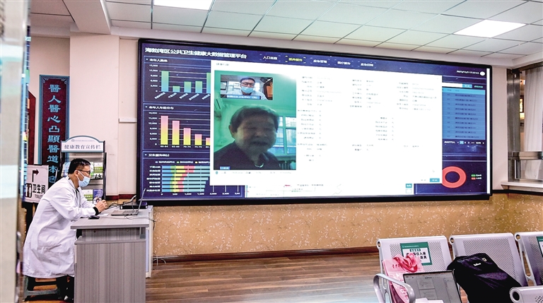 “我们利用海勃湾区‘三高共管、六病同防’管理平台,通过‘便携式公共卫生随访包’,刷患者身份证同步检测血糖、尿酸、心电图等,优化了之前手动录入信息的工作方式,还能及早发现辖区居民潜在的健康问题,并采取有效的干预措施,降低并发症的风险,提供更加优质的诊疗服务。”林荫社区卫生服务中心公卫科负责人寇洁说。