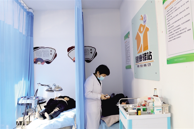 海勃湾区林荫街道金裕社区离市区较远、交通不便,辖区居民人口老龄化比例偏高,林荫社区卫生服务中心针对这一情况,选派中心的全科医生轮流坐诊金裕社区健康驿站,为辖区居民提供基本中西医初诊服务,可开展常规检查13种,治疗项目48种。此举切实解决了辖区居民没有就近看病的地方、去医院耗时费力的困扰。