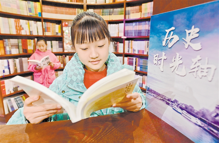 1月10日,小朋友在呼和浩特新华书店腾飞路店内看书学习。寒假伊始,不少学生选择前往图书馆、书店阅读学习,在书海中享受快乐寒假,学习充电不打烊。本报记者 王磊 摄