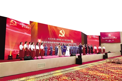 ——创新主题教育形式,组织全体机关干部参观“亮丽内蒙古 奋进新征程——学习宣传贯彻中共二十大精神”主题展等主题党日活动,自治区政协党组书记、主席张延昆带领机关全体党员重温入党誓词。举办“扎实开展主题教育 建功自治区两件大事——2023年内蒙古自治区十三届政协书画作品展”,中央主题教育第一指导组、自治区党政领导先后参观指导,各党派团体和各族群众6万余人次参观展览。举办主题运动会、文艺汇演等活动,引导广大委员、机关干部和各族各界人士感党恩、听党话、跟党走。通过一场场党建活动,一个个“特色课堂”,凝聚起团结奋进向心力、干事创业精气神。