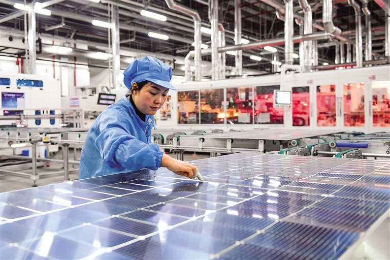 1月15日,位于鄂尔多斯市达拉特旗的内蒙古汇达一道新能源科技有限公司生产车间内一片繁忙,工人正在赶制订单,加紧生产高效光伏板组件,力争新年开门红。近年来,内蒙古积极发展光伏等新能源产业,全力推进光伏项目建设。