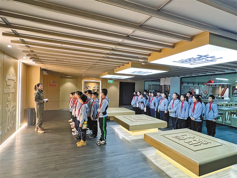 近日,内蒙古新华书店开展了“铸牢中华民族共同体意识 争做民族团结石榴籽”主题研学实践活动,来自呼和浩特市大学路小学滨河校区的30余名学生开启了文化之旅。学生们通过参观“光影汉字长廊”,在雕版印刷课中探寻汉字之美,在“全景汉字剧院”中学习汉字文化背后的中国故事,近距离接触历史文化和汉字传播历史。此次活动,为青少年寒假生活提供了多元化的第二课堂,不仅提高了学生的汉字语文素养,树立了正确的文化价值观,在传承弘扬中华优秀传统文化的同时,铸牢中华民族共同体意识。