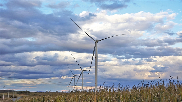 在呼伦贝尔一望无际的大草原上,一座座巨型“风车”迎风旋转,雄伟壮观。随着叶片旋转产生的风电,为“十四冬”赛事场馆提供源源不断的绿色电能,实现“十四冬”赛事场馆清洁电力供应。