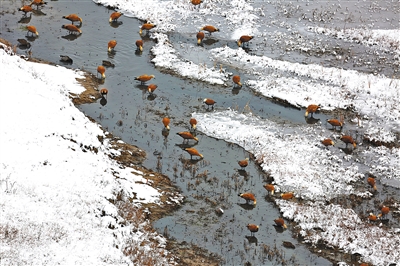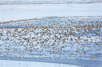 “吱——”“嘎——”隆冬时节,内蒙古萨拉乌苏国家湿地公园上万只候鸟栖息觅食、翩跹起舞,犹如一幅“万鸟图”,成为冬日里一道诗意风景。当地管理部门通过投喂食物、加强巡护等措施,确保它们安全越冬。