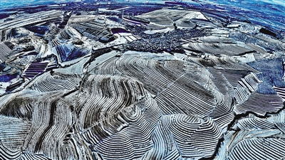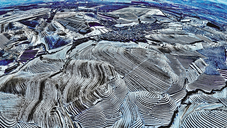 雪后的北疆大地银装素裹、美景如画。在赤峰市红山区文钟镇,白雪覆盖在层层叠叠的梯田上,错落有致、宛若银带,形成了大自然独特的纹理,孕育着新的生机。李富 摄