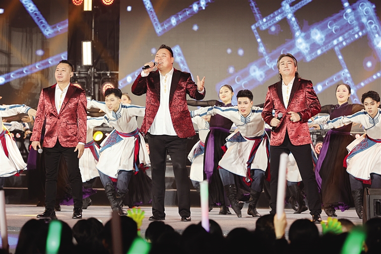 阿都沁组合演唱的《我是牧马人》,带领观众开启了一段感悟蒙古马精神的音乐之旅。阿都沁组合成员高金山说:“我们带来的原创歌曲《我是牧马人》唱出了内蒙古人的坚强勇敢和不畏艰难,在传统音乐元素基础上进行了创新和改编,加入快板旋律,希望让大家感受到内蒙古音乐魅力。”