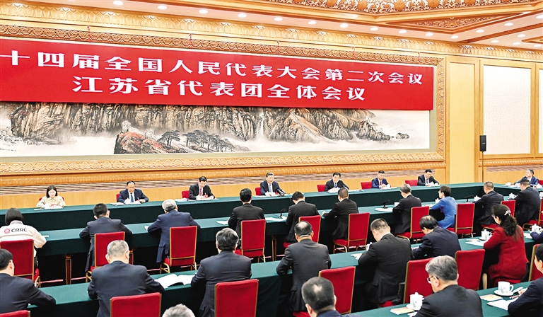 在认真听取大家发言后,习近平作了发言。他首先表示赞成政府工作报告,充分肯定江苏经济社会发展取得的新进展新成效,希望江苏坚定信心、鼓足干劲、勇挑大梁,为全国大局作出更大贡献。