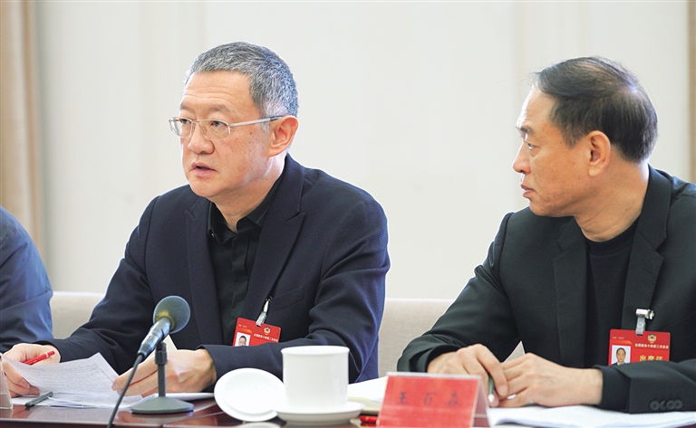 3月5日下午,全国人大代表路红波在审议政府工作报告时建议,设立央企数字化转型重大专项工程,推动央企集中式数字化基础设施建设,进一步完善数字化转型服务体系。本报记者 孟和朝鲁 摄