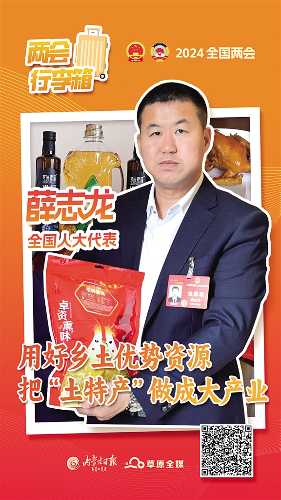 “这是我们乌兰察布市卓资县的传统名食卓资熏鸡,这是我们自产的两款亚麻籽油,它们都是我们当地有特色的农畜产品,更是让老百姓增收致富的产品。乌兰察布有着丰富的资源,欢迎大家到乌兰察布走一走、看一看。”薛志龙热情地介绍起家乡的特产,并向全国人大代表发出邀请。