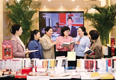 | 3月7日,参加十四届全国人大二次会议的内蒙古代表团的女代表们在会议间隙来到驻地书吧选购书籍。大会开幕以来,她们围绕我区经济建设、科技创新、乡村振兴等方面提建议、谈感受,积极建言献策。本报记者 马建荃 摄 |