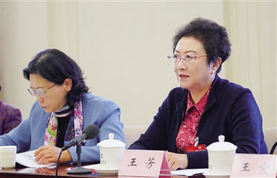 | 3月7日,住我区全国政协委员王芳(右)建议,加快推进家庭教育专业化人才培养工作,在师范类院校普遍开设家庭教育必修课。本报记者 王鹏 摄 |